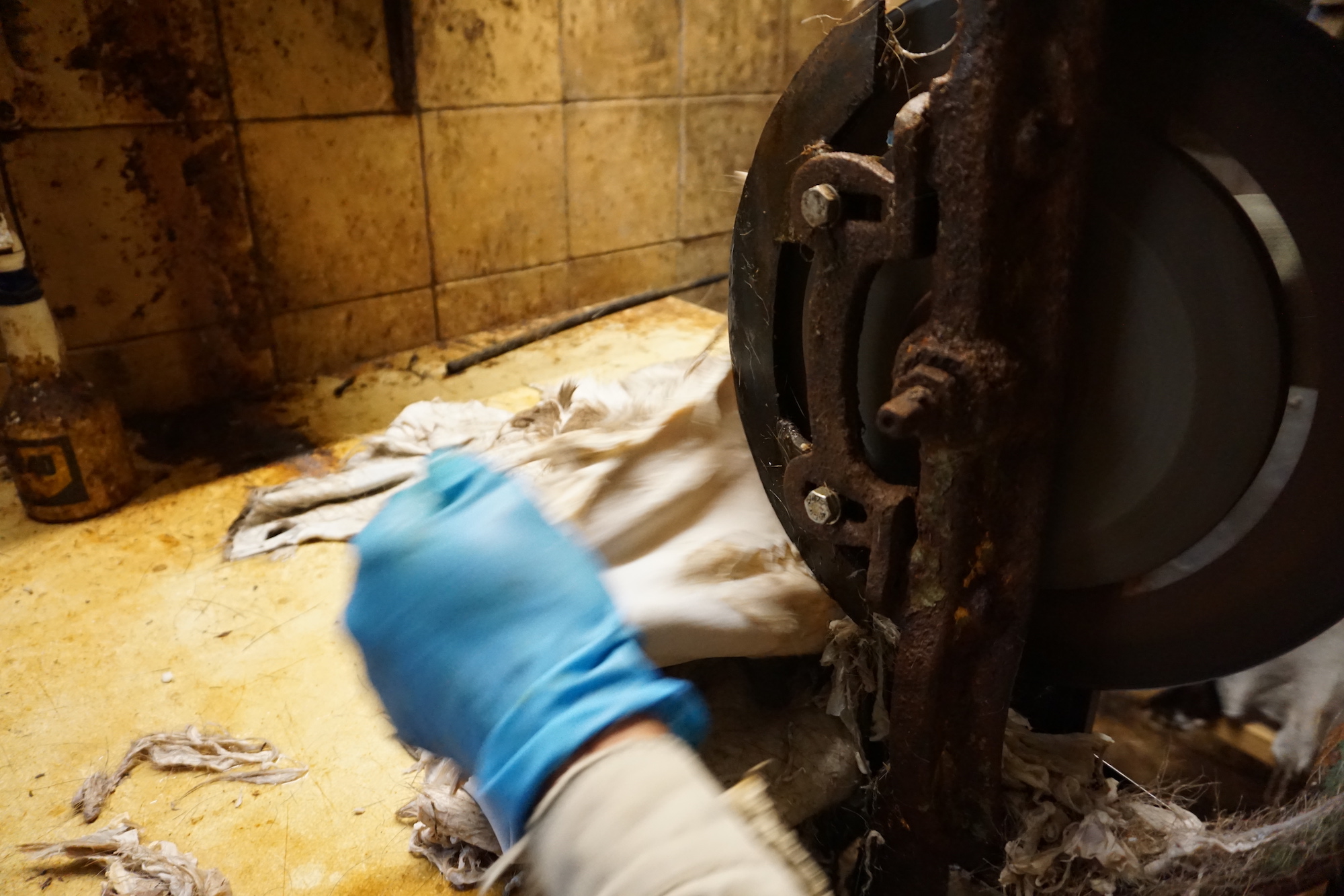 Damit Ihre Felle nicht hart wie ein Brett werden entfernen wir die Lederhaut so weit wie möglich. Das ist ein kitzeliges Geschäft. Ein gutes Fingerspitzengefühl und eine genau geschliffene und hergerichtete Schneide sind dafür von Nöten.
